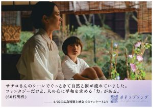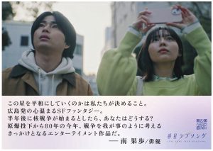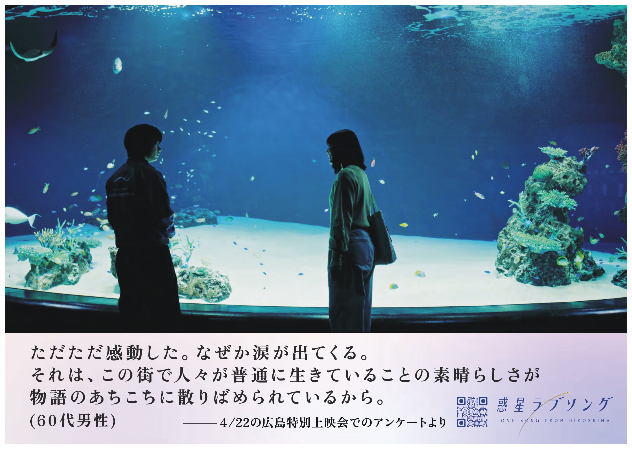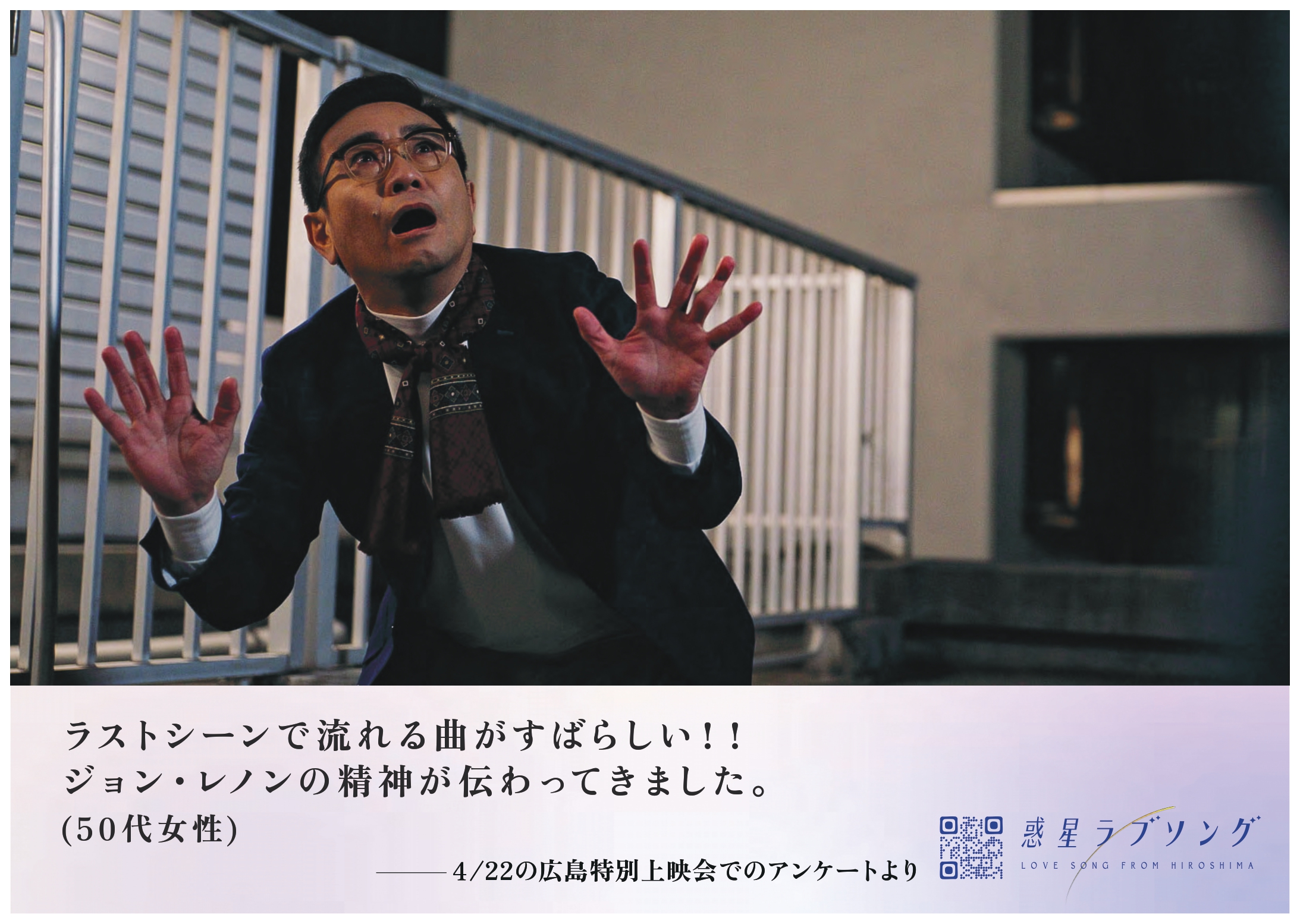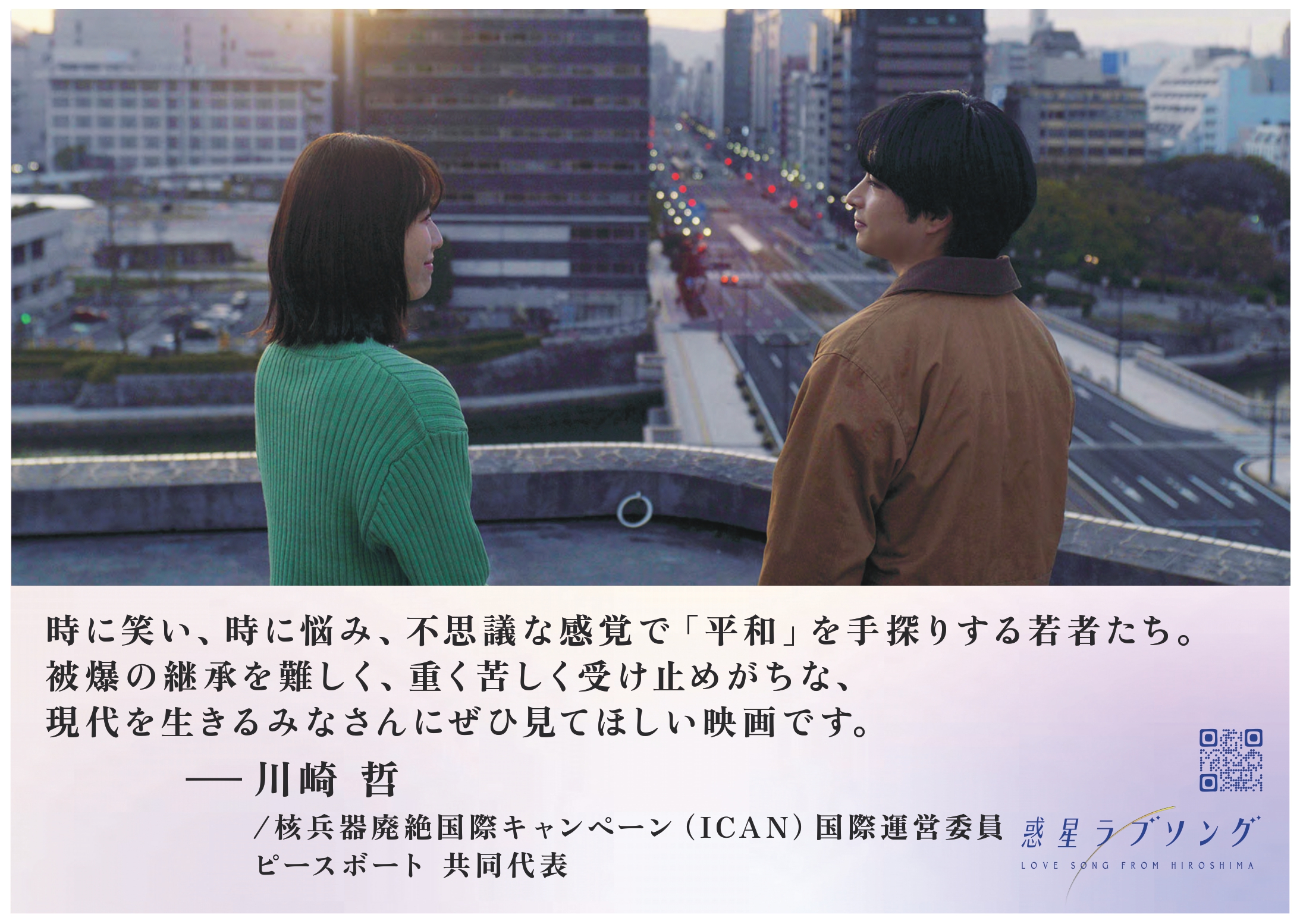 今、世界で戦争していることが本当に痛ましい。 それはかつての広島の痛みと同じである。 核戦争の危機は迫っている。 この星の運命はこの星に住む人たちが握っている。 本当にそう思います。 世界は平和でなければいけない。 そのために自分たちに何ができるのか? もっと多くの若者に感じてもらいたい。 世界の平和について考えさせるこの映画を私たちはあたたかく見守りたいと思います。