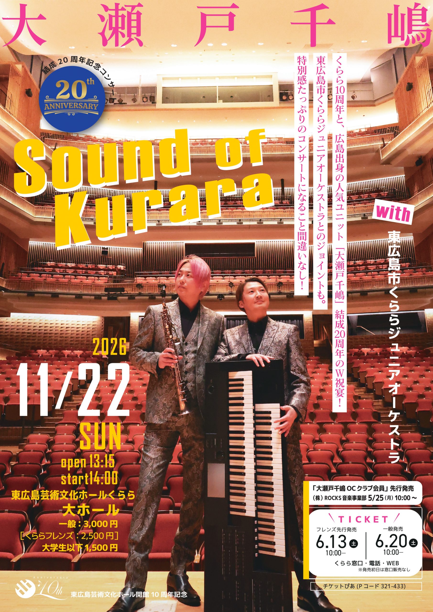 大瀬戸千嶋のサクソフォンとエレクトーン、そしてジュニアオーケストラによる特別編成で演奏します。