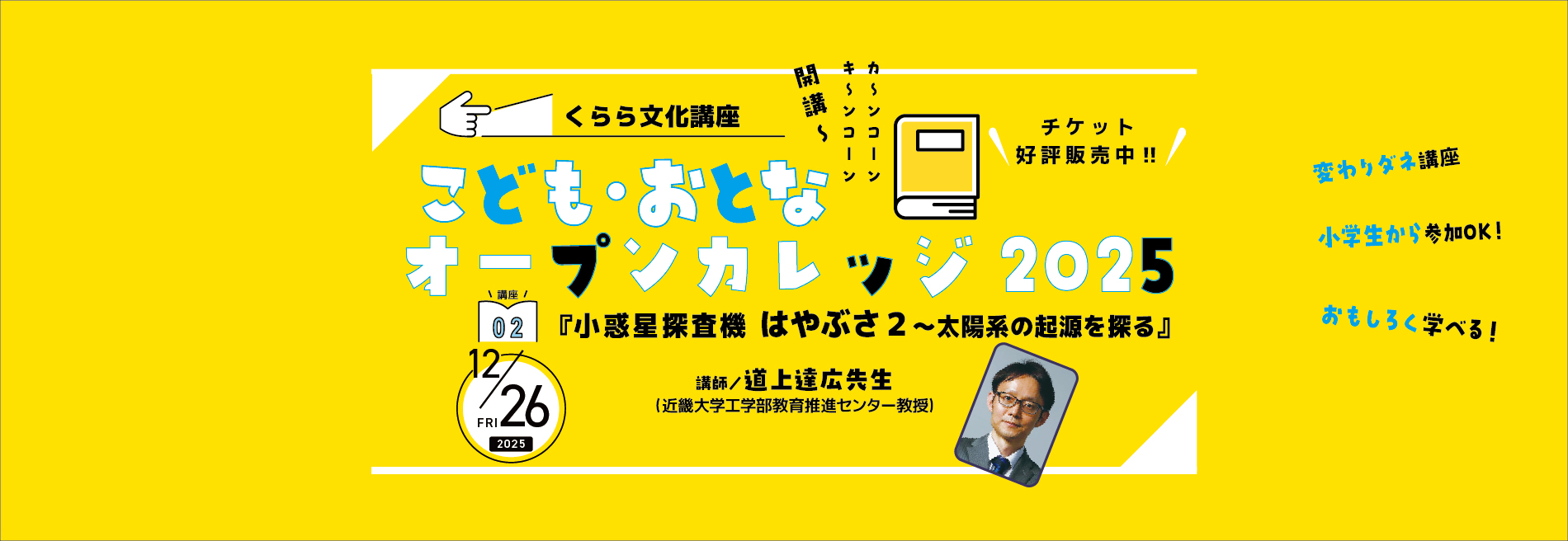 重要なお知らせ 2025年07月01日 「くららガイドブック」を改訂しました。(2025/7/01) 2025年07月01日 市営岡町駐車場の民営化と利用料の変更について 2025年05月02日 くららインターネットに係るチケット販売手数料改定のお知らせ バリアフリー設備等のご案内 東広島芸術文化ホールくらら バリアフリー設備のご案内 フロアガイド ピックアップ催し物一覧 主催・共催 大ホール 2026年3月7日(土) 「くらら★ダンスの日2025」 出演者募集 主催・共催 2025年12 月20 日(土) 演劇であそぼう!表現体験ワークショップ ~NYシアター・エデュケーション・プログラム~ 主催・共催 大ホール 2025年12月12日(金) 【くららシネマシリーズ 特別編】 「惑星ラブソング」上映会 主催・共催 大ホール 2025年 11月1日(土) 人形劇団ひとみ座公演 「ふしぎ駄菓子屋 銭天堂」 主催・共催 サロンホール 12月26日(金) くらら文化講座「こども・おとなオープンカレッジ2025」 主催・共催 大ホール 2025年12月14日(日) 須川展也サクソフォン・リサイタル&くらら Special ブラスコンサート 主催・共催 小ホール 2026年2月14日(土) 市民参加型ダンス公演「みんな de ダンス‼ 」Vol.2 主催・共催 大ホール 2025年11月29日(土) 広島交響楽団 第6回東広島定期演奏会 催し物一覧へ 新着情報のおしらせ 2025年10月28日 2025年11月 近隣駐車場混雑予想について(交通アクセスのご案内) 2025年10月27日 (10/27更新)2025年11月抽選会と市民ギャラリー空き情報のお知らせ 2025年10月04日 広報誌 [Seed] 10・11月号発行しました! 2025年10月04日 「メストレ ハープ・リサイタル」後半から入場できる ”レイトチケット” 販売中! 2025年09月28日 2025年10月 近隣駐車場混雑予想について(交通アクセスのご案内) もっと見る